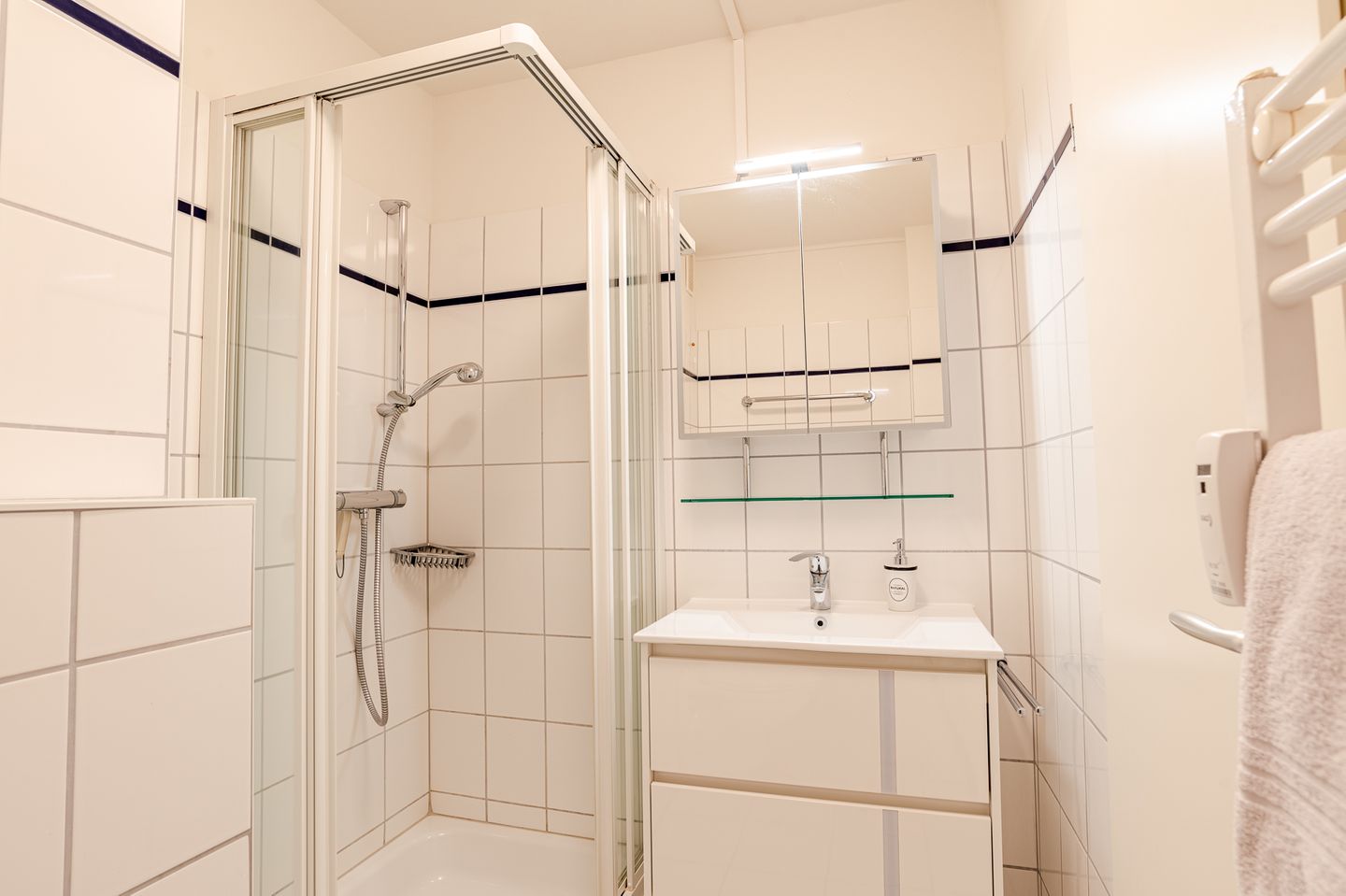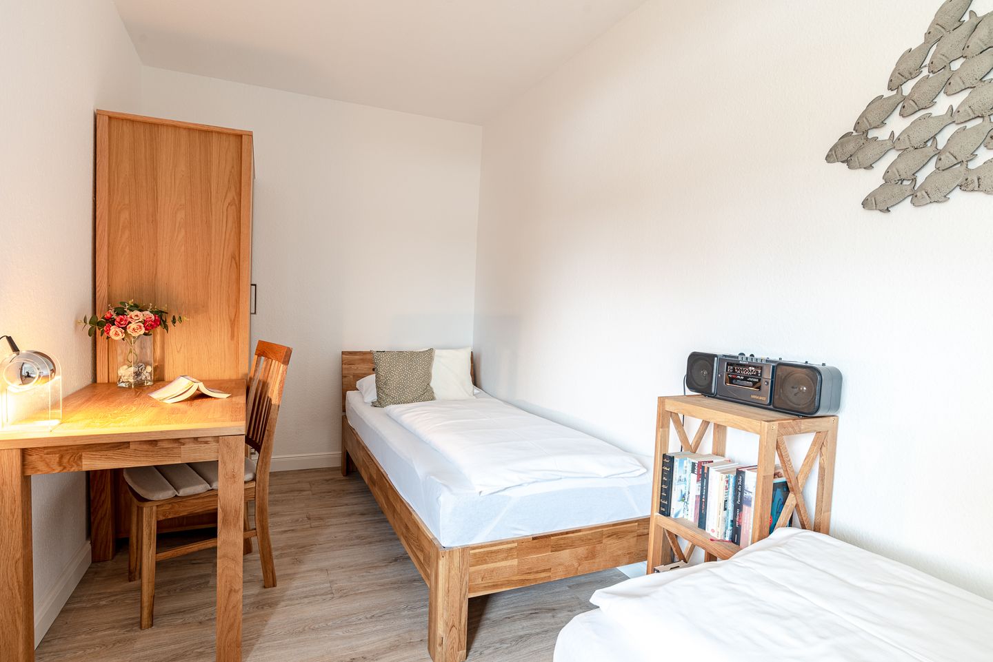 Sie ist ca 52 qm groß und eignet sich für zwei bis vier Personen. Unsere Strandliebe besteht aus einem Wohnzimmer, zwei Schlafzimmern, einer vom Wohnzimmer abgehenden Küche, einem Duschbad mit WC, einer Diele mit Einbauschrank, sowie einem vom Wohnzimmer aus zugänglichen Balkon in Südlage mit Blick ins Grüne und auf die Nordsee.