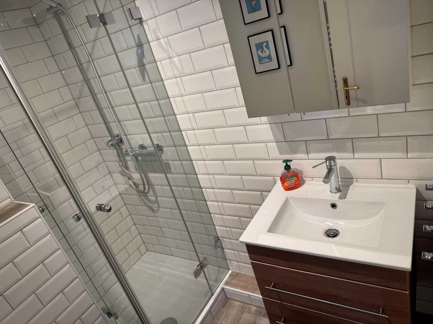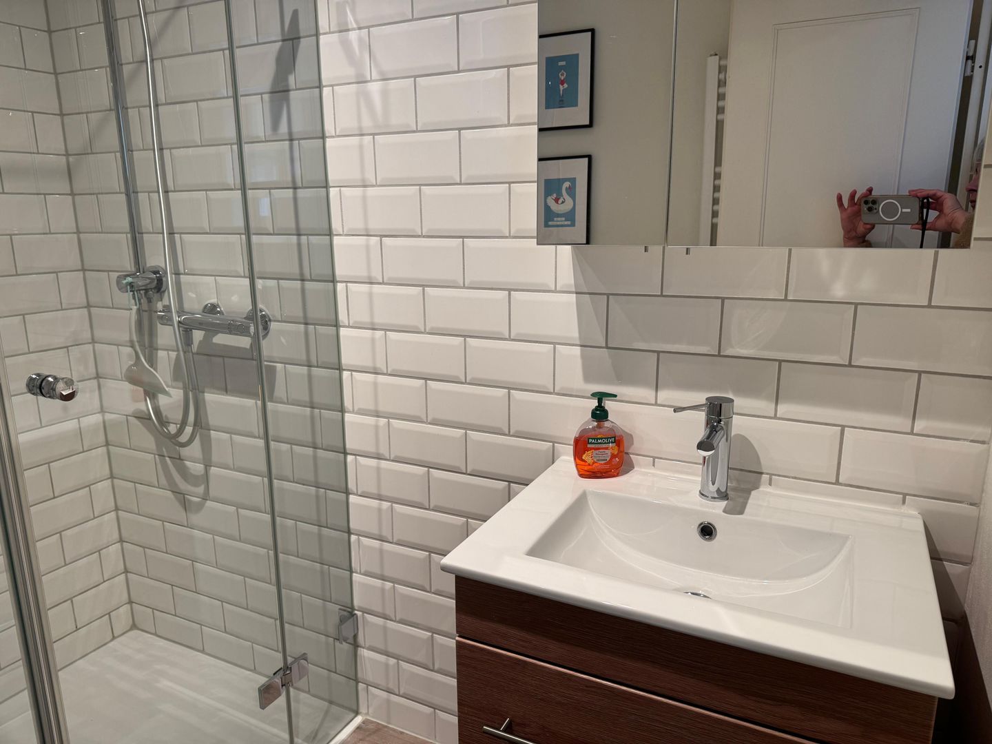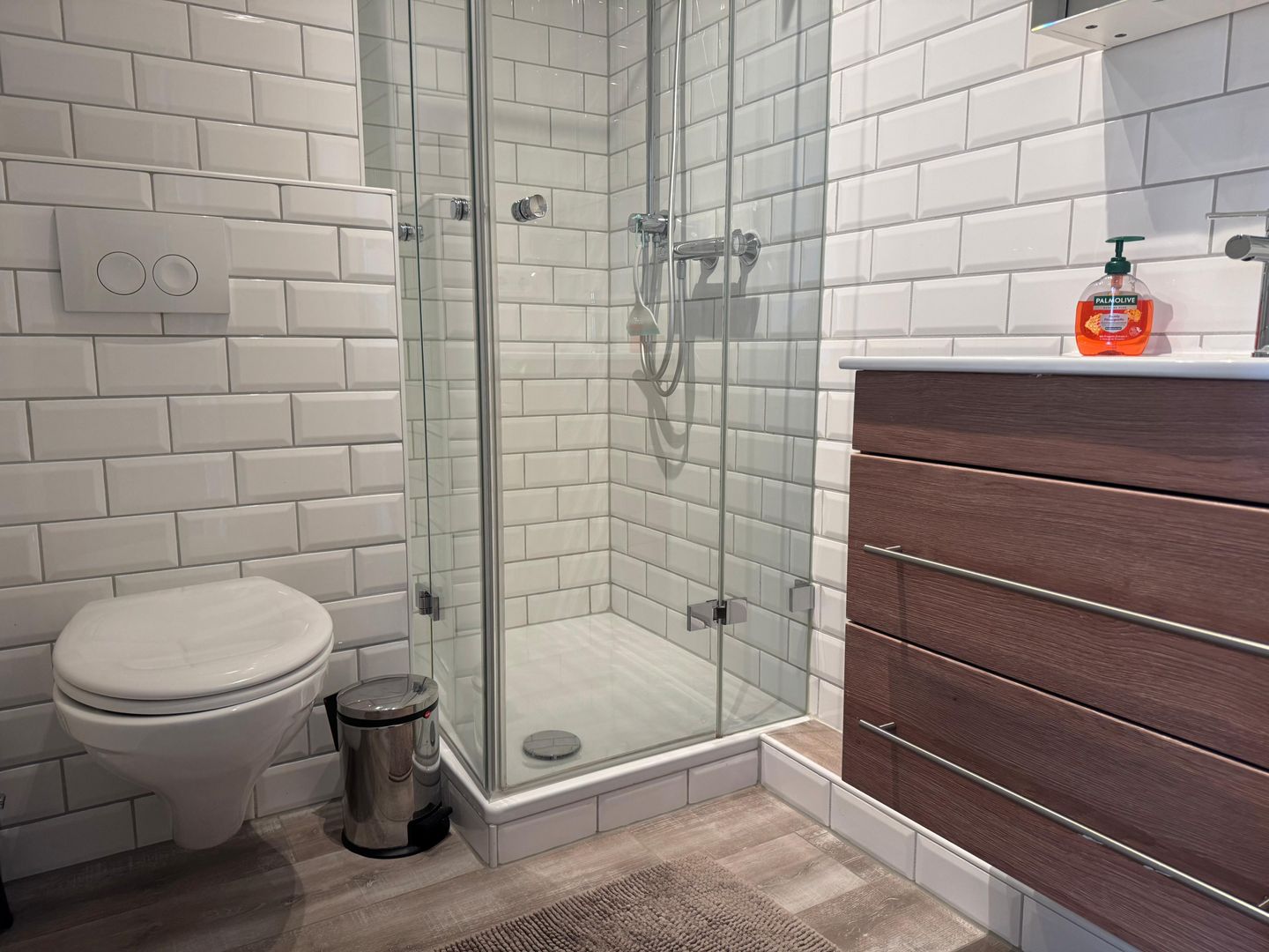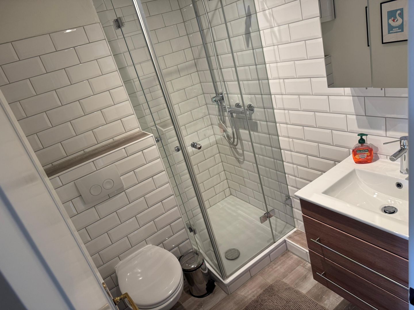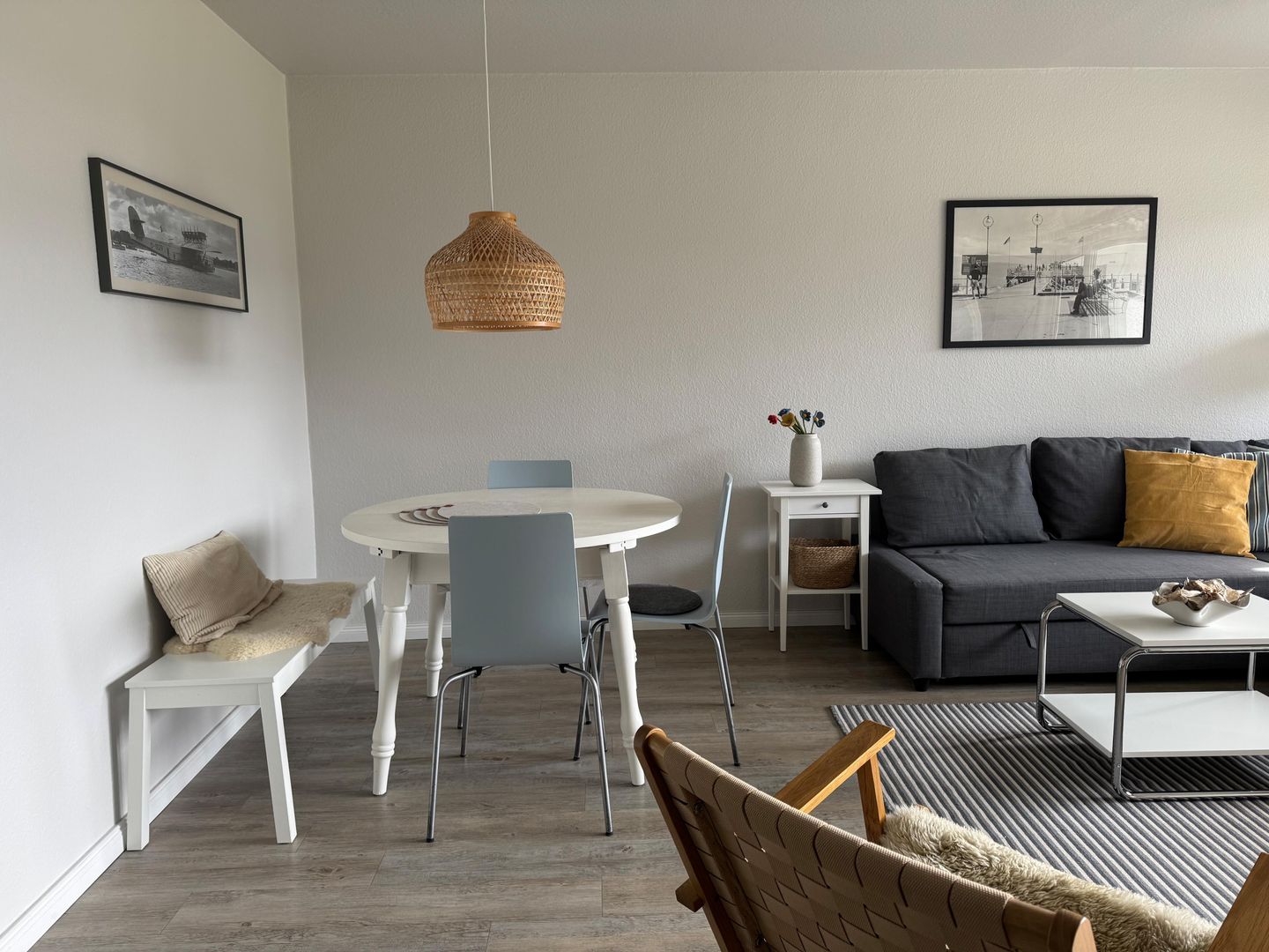 Der Wohnbereich ist freundlich geschnitten und mit Sofaecke, Sessel, Esstisch sowie TV mit Satellitenanschluss, Radio und DVD-Spieler ausgestattet. Die offene Küche ist zum Wohnzimmer hin gestaltet und bietet mit Cerankochfeld, Backofen, Mikrowelle, Kühlschrank mit Gefrierfach, Spülmaschine, Kaffeemaschine, Toaster sowie umfangreichen Küchenutensilien eine praktische Ausstattung für die tägliche Selbstversorgung. Ein Schlafzimmer und ein Badezimmer mit bodengleicher Dusche, WC, Waschbecken, Spiegel, Kosmetikspiegel und Haartrockner ergänzen das Raumangebot sinnvoll.